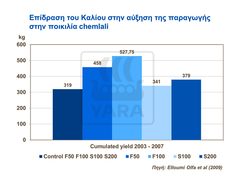 Το κάλιο έχει ιδιαίτερη θέση στη θρέψη της ελιάς και είναι το δεύτερο θρεπτικό στοιχείο μετά το άζωτο που απαιτείται σε μεγάλες ποσότητες από τα φυτά, ασκώντας σημαντική επίδραση στην απόδοσή τους.